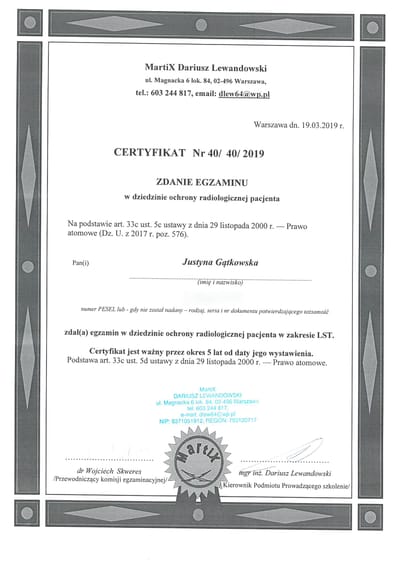 Jestem Dyplomowaną Higienistką Stomatologiczną. Jestem Absolwentką Studium Medycznego w Ciechanowie, o kierunku Higienistka Stomatologiczna.